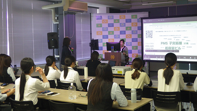 第2部は女性限定の懇談会を行いました。匿名Q&Aアプリを使用して、講演内容について気になったことや、質問などをリアルタイムで募集し、先生に回答いただきました。