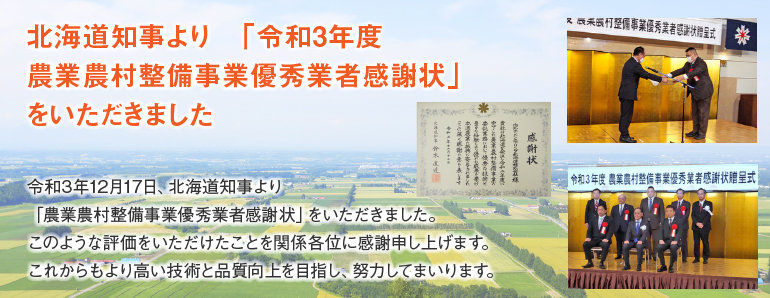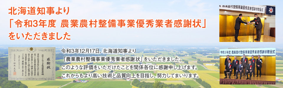 北海道日高振興局より優秀管理技術者感謝状をいただきました