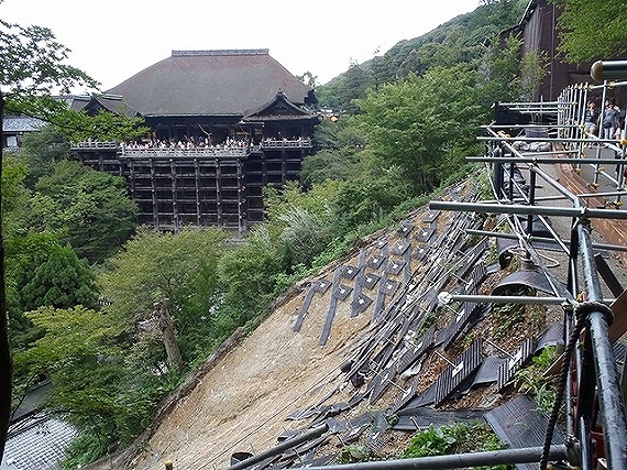 清水寺は、世界遺産(世界文化遺産)に登録されており、断崖の上にせり出した懸造りの本堂(国宝)が有名です。近年の豪雨災害により崩落した清水寺周辺の斜面について、開発事業部で実施している斜面安定対策工事などの現場を見学しました。