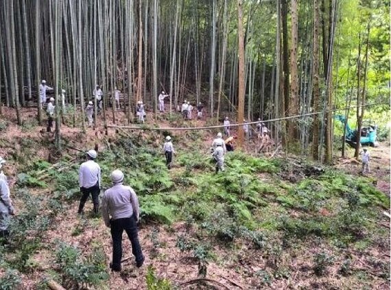 国営東播用水地区の上流に位置し、当地区の水源地である兵庫県丹波篠山市西谷地区の山林を保全するため、植林地内の竹侵入対策として伐採等の保全活動に参加しました。 |