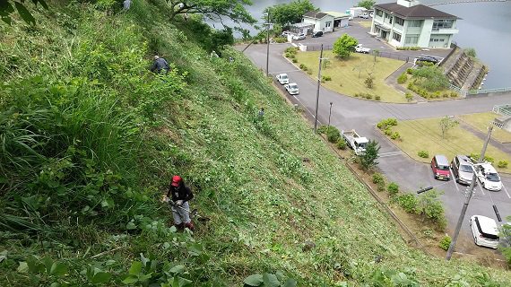 上津ダムは、国営大和高原北部土地改良事業により造成されたかんがい・上水を目的とした利水ダムです。今般、環境美化運動として改良区主催によるダム周辺に繁茂している草刈り及び清掃活動に参加しました。近畿農政局をはじめ奈良県、関係市町村、土地改良区関係、周辺地域住民、関連企業等、約160名がコロナ感染防止に留意しながら汗を流しました。 |