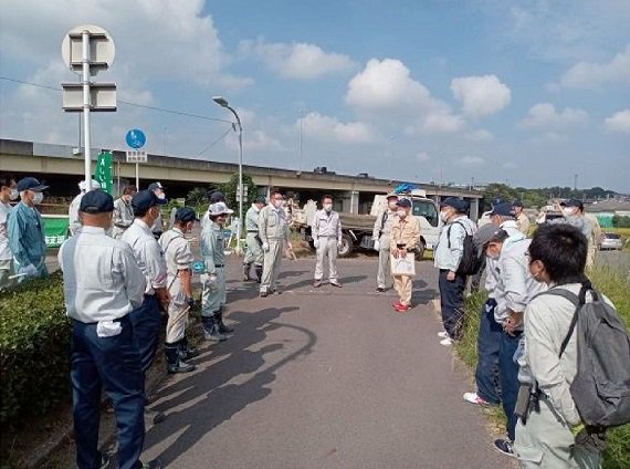 明治用水は矢作川を水源として明治頭首工によって取水、安城市を中心に8市にまたがる矢作川右岸約4,800haの農地をかんがいしています。今般、明治頭首工から数キロ下流地点の明治本流水路右岸フェンス沿いの除草・清掃活動に参加しました。 |