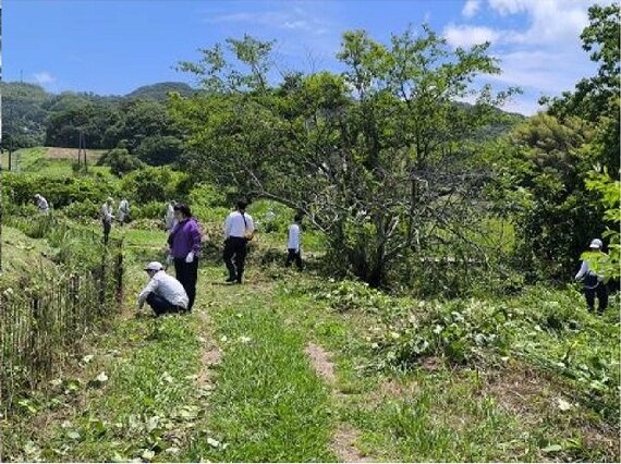 常盤ダム湖周辺の草刈り、刈り取った草の集積作業等 |