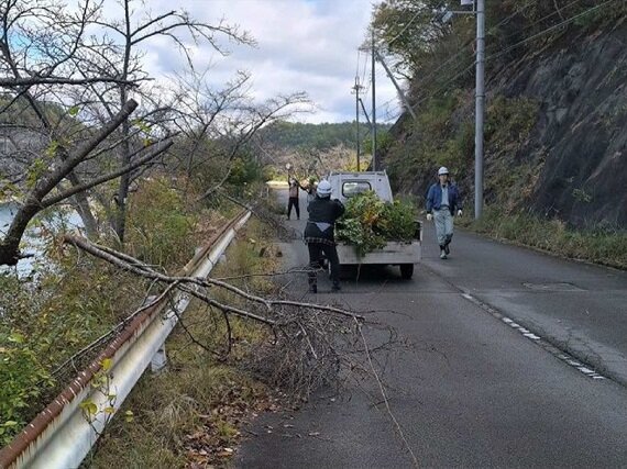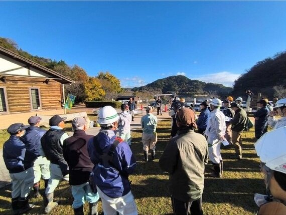 兵庫県中央部の多可町に位置する翠明湖(糀屋ダム ロックフィルダム)は、国営加古川西部地区約3,600haの主水源で、現在、国による直轄管理がなされています。ダム周辺では地元により植樹された桜が美しい景観をつくっており、今般、桜の手入れと雑木の伐採・搬出等の作業に参加しました。 |