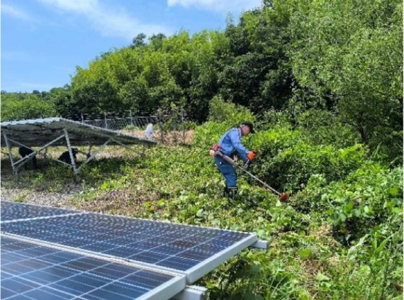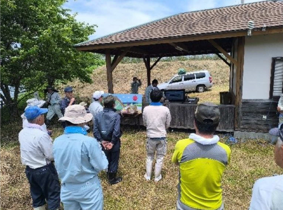 北淡路地区では、近年、企業等の農業参入を促進されており、新たな農業に取り組まれてきています。国営北淡路農地開発事業の主水源として、谷山ダムとともに造成された常盤ダム(1974年度完成、633千m3)は、現在、北淡路土地改良区が管理されており、今般、ダム及び周辺のクリーン活動(草刈り、集積作業)に参加しました。作業終了後、土地改良区様から環境学習として太陽光発電による施設維持管理についてのお話を伺いました。 |