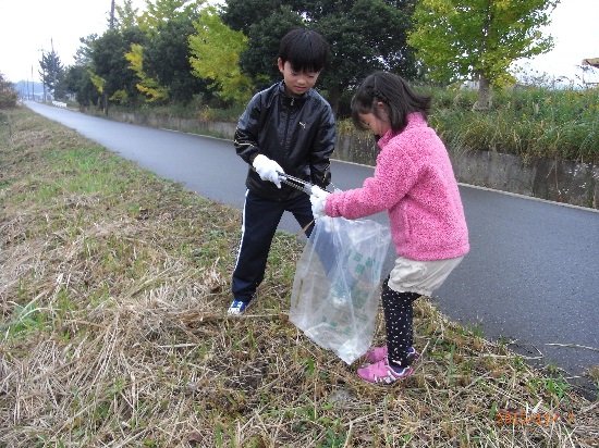 農道、排水路沿いにおいて空き缶等のゴミ拾い |