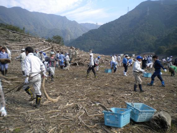 ダム愛護事業の一環として、毎年ダム湖岸に漂着浮遊している流木等が、ダムの重要な施設を損傷させる危険を回避するため、また永源寺の観光資源である景観を阻害することなく保全するため、毎年かんがい期を過ぎた10月をダム愛護月間と定め、ダムの美化に努めている。 |