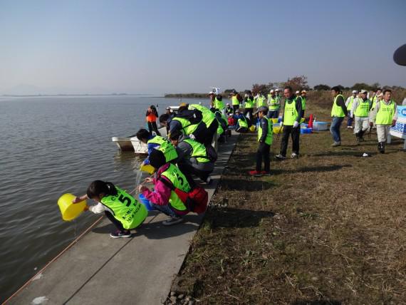 児島湖は昭和25~36年に国営児島湾沿岸農業水利事業により児島湾を締め切って作られた淡水湖で、周辺の干拓農地約4,300haの用水源となっています。また、締切堤防は干拓地を高潮被害から防御する機能も果たしています。一時期、淡水湖の水質悪化が進んだことから、様々な水質浄化対策や環境保全活動が行われています。 |