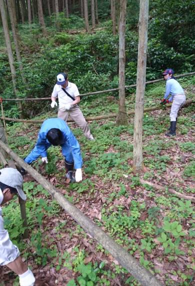 御前山ビオトープに移植した希少植物は順調に生育していますが、他の野草に負けないよう適正に管理(順応的管理)する必要があります。また、山桜等の植樹や老朽化した施設の補修をボランティア作業で行います。 |