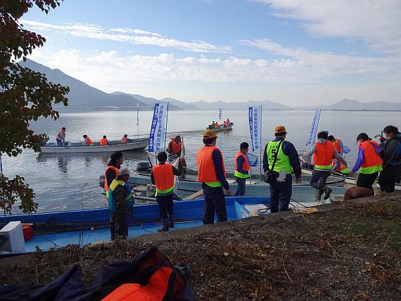 児島湖は、児島湾を締め切って作られた淡水湖で、干拓農地約4,300haの用水源となっています。また、締切堤防は干拓地を高潮被害から防御する機能も果たしています。一時期、淡水湖の水質悪化が進んだことから、様々な水質浄化対策や環境保全活動が行われています。今回の清掃大作戦は、県、国、流域市町、民間団体等が一体となり一斉清掃を行ったもので、約1,700名が参加し、約27トンのゴミを回収しました |