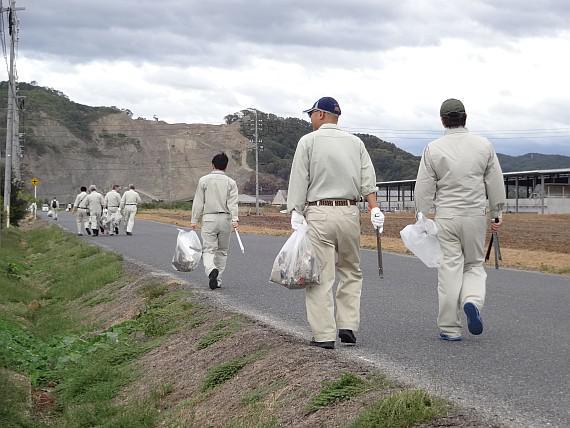 ○笠岡湾干拓はS41~H元に畑と工業用地が造成された生産の場であるばかりでなく、公園や道の駅などが整備され地域の方々に親しまれています。今回の清掃活動は、干拓地内で行われる「べいふぁーむ駅伝」を前に、土地改良区を始め、行政、企業、NPOや市民が協働して干拓地の美化を図り、選手や観客の皆様方を気持ちよくお迎えするための活動です。今年で14回目になり約520名の参加がありました。作業終了後、土地改良区から干拓地内で生産された牛乳等が配布されました。 |